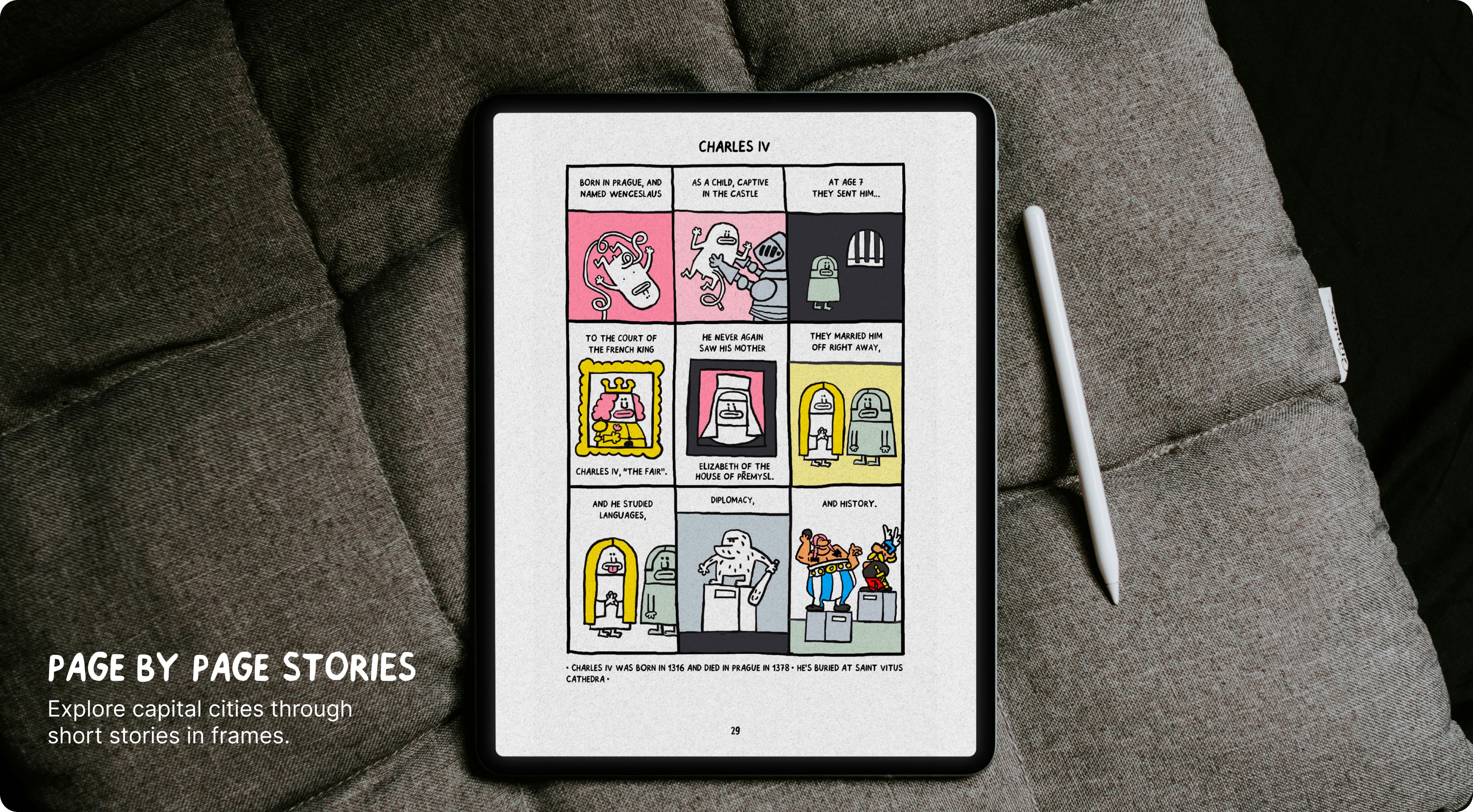 Each story unfolds in a 9-frame comic style, full of symbolism, hidden meanings, and the people who shaped the cities we walk through today.